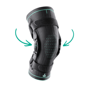- Ein hoher Tragekomfort wird durch den elastischen Flexbereich über der Kniescheibe erreicht, der ein angenehmes Beugen und Strecken des Knies ermöglicht.